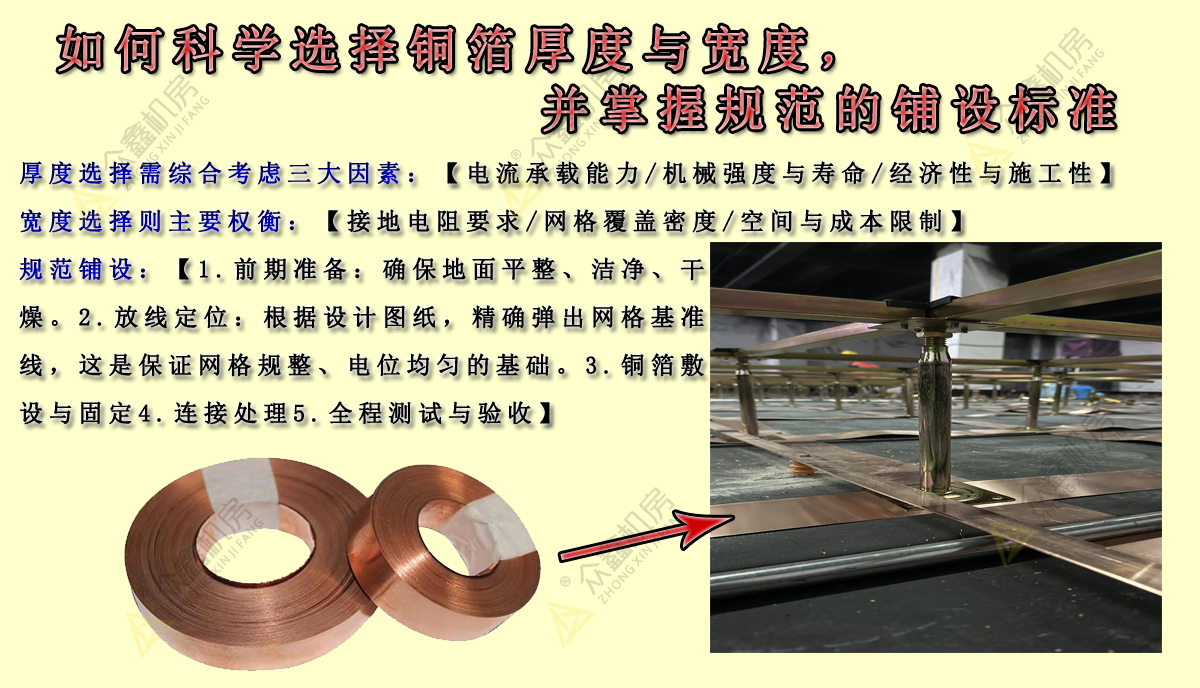 2025-12-23在数据中心和各类机房的建设中,防静电地板接地系统如同人体的“神经系统”,至关重要却容易被忽视。其中,作为电流泄放主通道的接地铜箔,其规格选择与铺设工艺直接决定了整个静电防护体系的有效性与可靠性。本文将为您系统解析如何科学选择铜箔厚度与宽度,