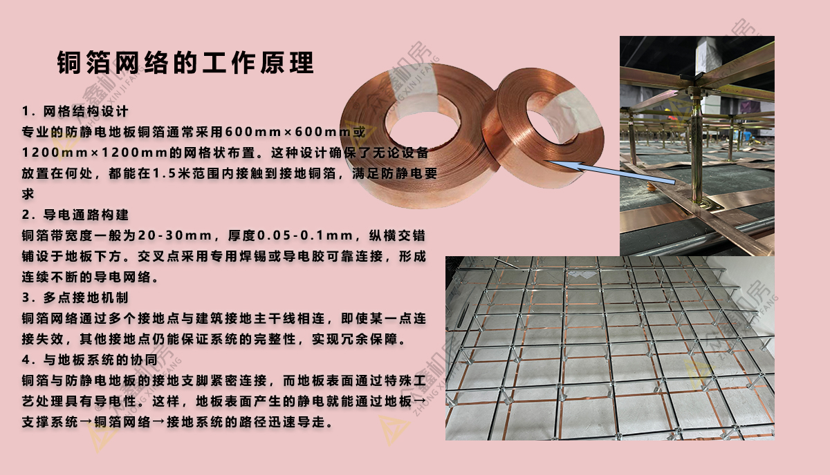 2026-02-02在现代化机房建设中,防静电地板是必不可少的基础设施。而隐藏在防静电地板下方的铜箔网络,更是保障机房安全稳定运行的“隐形卫士”。作为众鑫机房防静电地板源头厂家,今天我们就来详细解析防静电地板铜箔的作用与工作原理。一、铜箔的核心作用1. 静电导